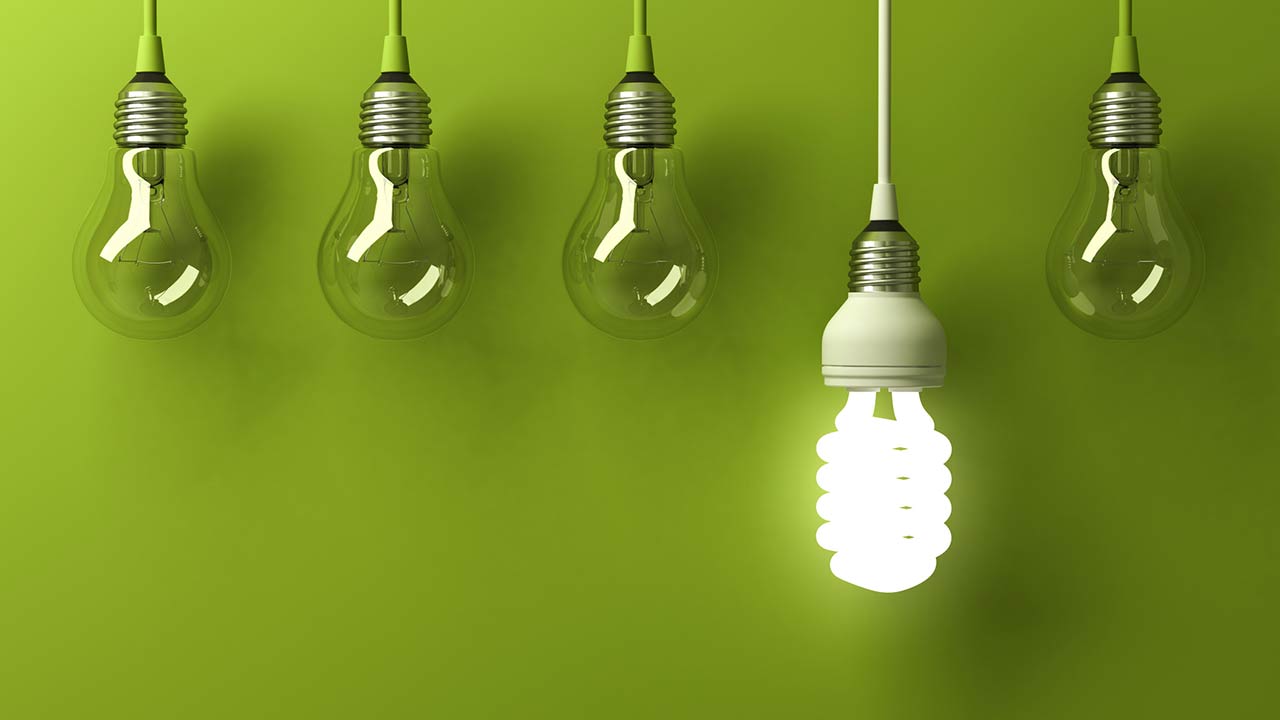 CFL bulbs (Compact Fluorescent Lamp) are much more efficient than incandescent bulbs, but they require different care once they burn out, because they contain mercury. Take them to a waste center.